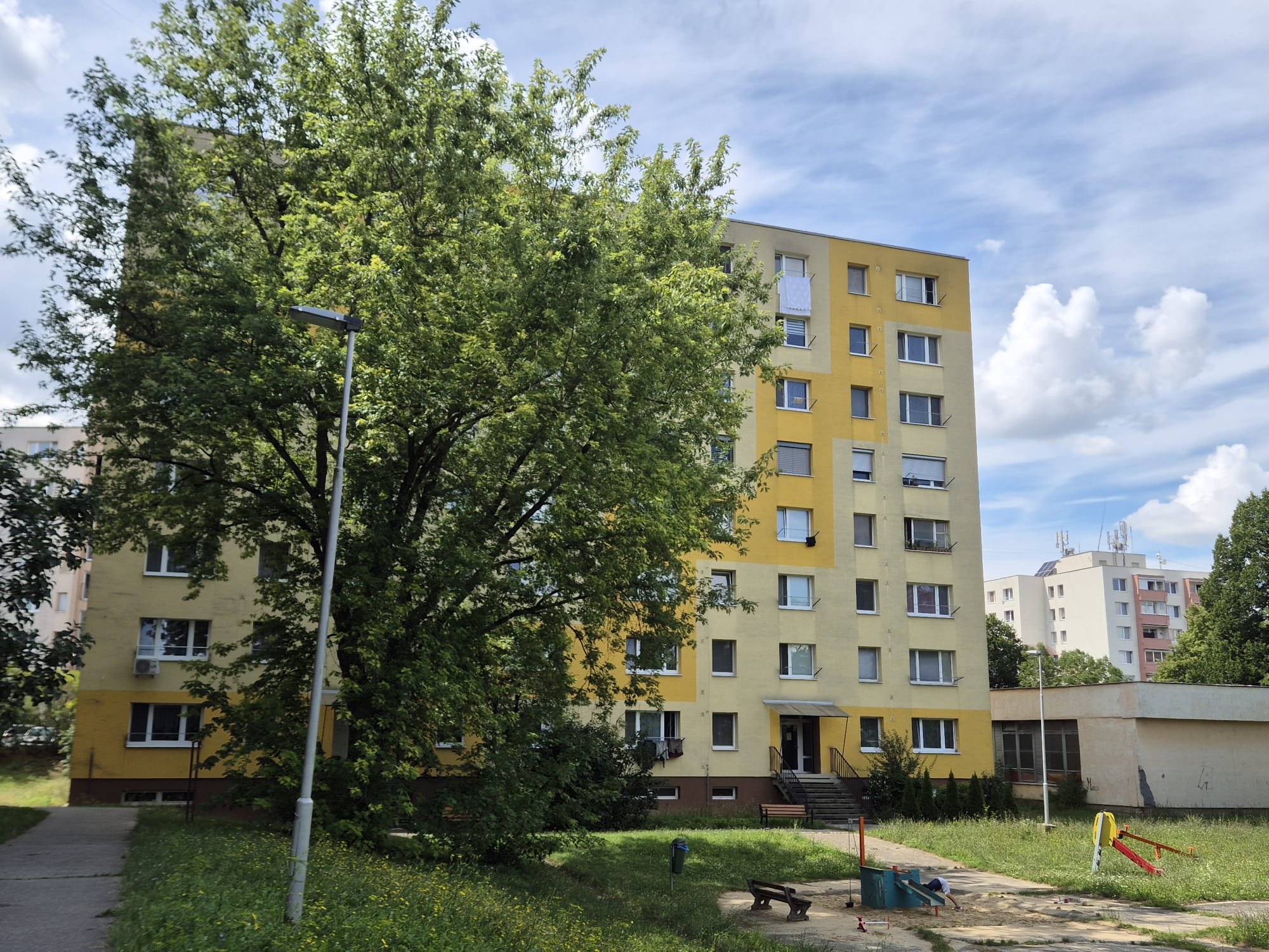 Bytový dom je zateplený, nová strecha, nové vchodové dvere, schránky.
