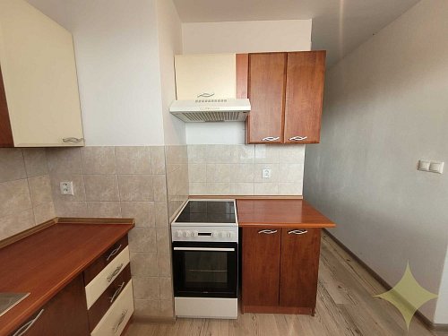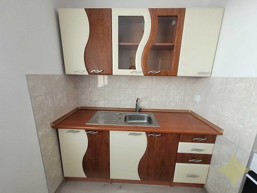V byte ostáva kuchynská linka, elektrický sporák, potravinová skrinka, rozkladací gauč.