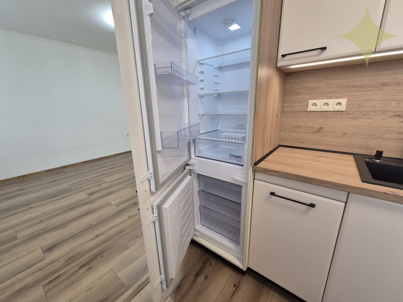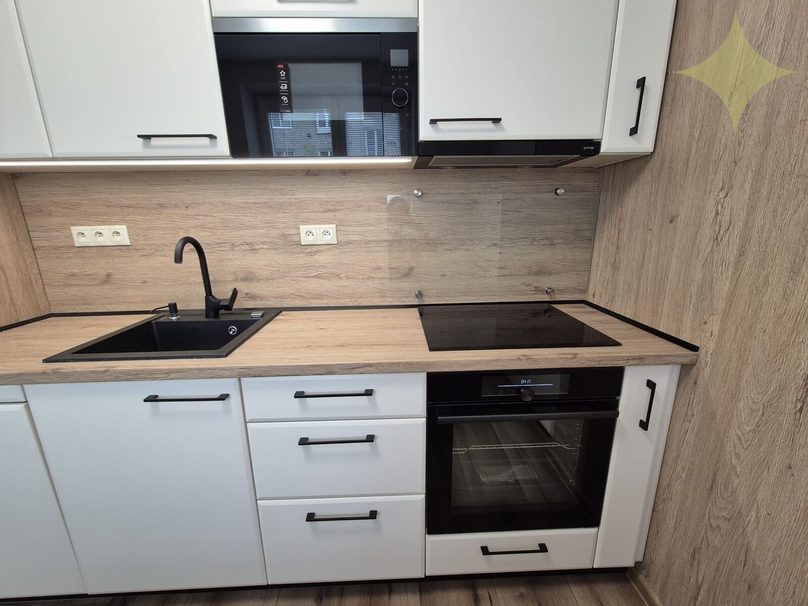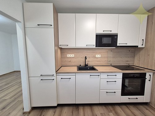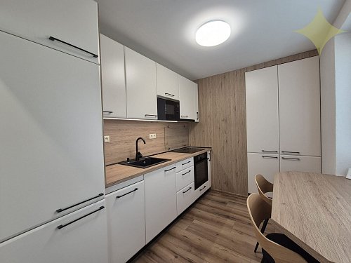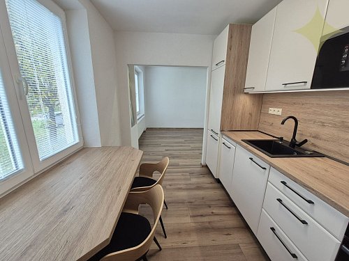 V byte ostáva kuchyňská linka s vstavanými spotrebičmi, práčka, jedálenský stôl, 2 stoličky,